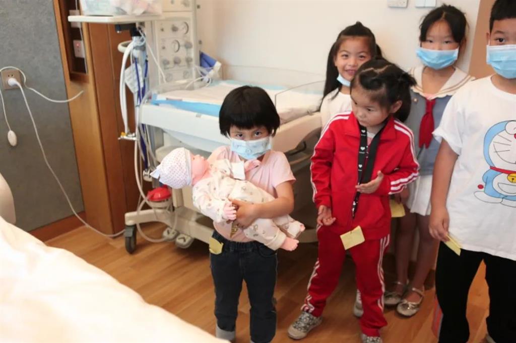 看完B超和四維彩超后,一行人來到胎心監(jiān)護室、高危門診、B超室,產(chǎn)檢室、分娩室、嬰兒游泳館等區(qū)域參觀,和平國際醫(yī)院高端婦產(chǎn)中心的護士陳霞用深入淺出的語言帶領(lǐng)孩子們走進這個見證生命降臨的神秘地方,講解了孕媽媽分娩后必不可少的輔助儀器,包括保暖臺、搶救臺等對新生寶寶至關(guān)重要的儀器。