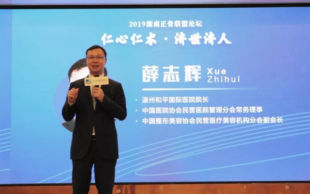 和平國(guó)際醫(yī)院院長(zhǎng)薛志輝介紹了辦院的初心和醫(yī)院的基本情況以及醫(yī)院的發(fā)展模式。他表示,未來(lái)希望能和浙南正骨聯(lián)盟的專家同道,在學(xué)術(shù)上有更多的交流。通過(guò)中西醫(yī)的融合貫通,幫助更多頸椎、腰椎痛患者減少痛苦。他也寄望浙南正骨聯(lián)盟論壇能夠越辦越好,造福更多的患者!