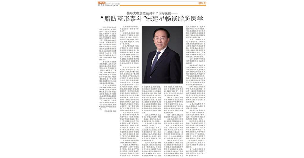 圖:溫州晚報(bào)獨(dú)家報(bào)道中國整形美容協(xié)會脂肪醫(yī)學(xué)分會會長、和平國際醫(yī)院副院長—宋建星教授。