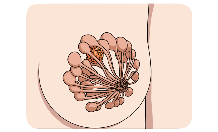 乳房脹痛、乳房出現(xiàn)腫塊、乳房皮膚像橘皮一樣坑坑洼洼、乳頭凹陷、乳暈皮膚瘙癢脫皮