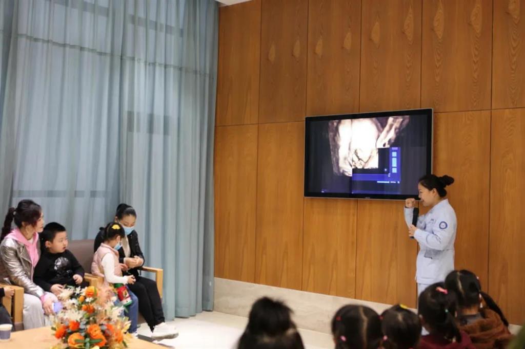 隨后,同學(xué)們和家長們觀看了嬰兒B超和四維彩超圖片,參觀胎心監(jiān)護(hù)室、胎兒分娩室。