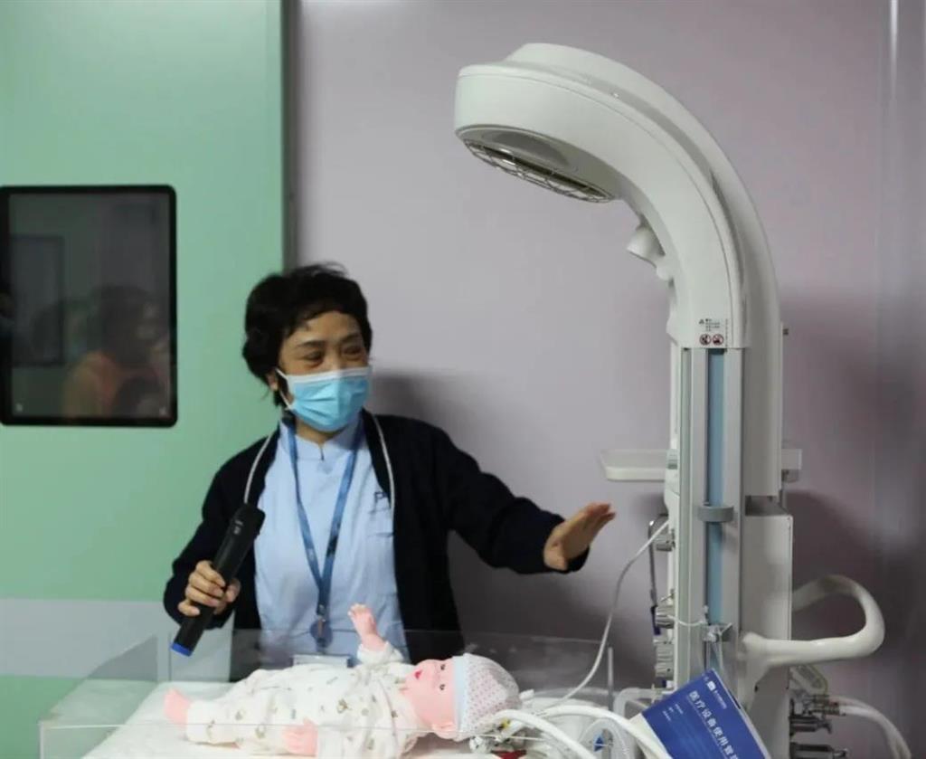 在產(chǎn)前診療中心副主任張金微和助產(chǎn)師張紫香的講解下,大家了解了胎兒的發(fā)育過程,也近距離觀看了包括保暖臺、搶救臺等新生兒輔助儀器。