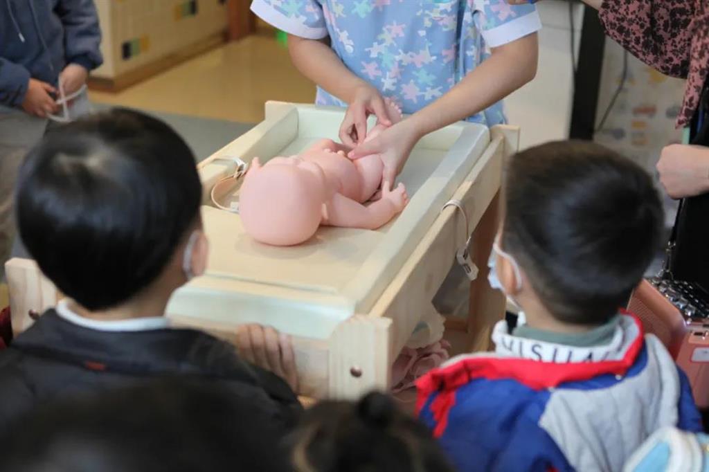 第一次了解關(guān)于嬰兒的知識,同學(xué)們都非常感興趣,認(rèn)真地聽著醫(yī)生解說。