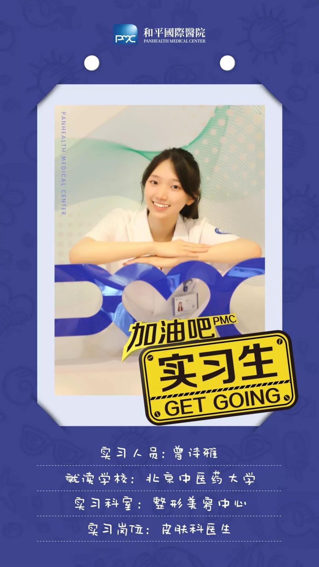 “因為在大陸求學,這個暑假,我參加了實習活動,我來到了溫州和平國際醫(yī)院。不僅學習到有關皮膚美容的知識,還觀摩了許多臨床經驗。在別處沒見過的先進儀器,沒接觸過的專業(yè)名詞和手法,讓我理解了醫(yī)美的基本原理;而細心幹練的醫(yī)護人員,衛(wèi)生整潔的美容間,則讓我感受到病人所能得到的最優(yōu)質的體驗。溫州是一個溫暖濕潤的城市,和平國際是一個溫暖美麗的醫(yī)院,很榮幸能有機會在這裏實習,希望待我畢業(yè)成長,羽翼豐滿,能有機會在此獻出一己之力。”