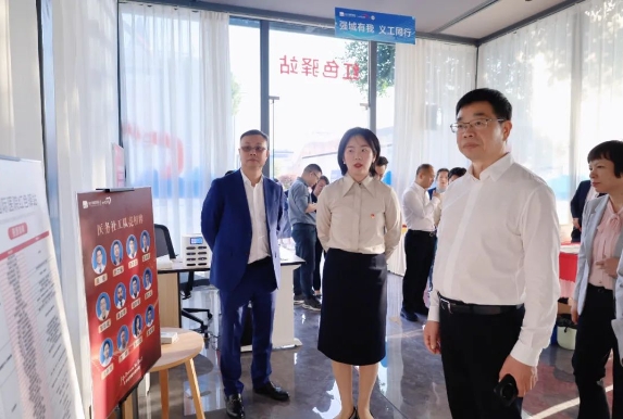 在和平國(guó)際醫(yī)院院長(zhǎng)薛志輝、黨委書(shū)記盧瓊的介紹下,何學(xué)考一行先后參觀了醫(yī)院醫(yī)務(wù)社工服務(wù)點(diǎn)、文化墻、黨建長(zhǎng)廊及紅色驛站,詳細(xì)了解醫(yī)院發(fā)展現(xiàn)狀、“兩新黨建”工作成效,并對(duì)醫(yī)務(wù)社工部“五位一體”新模式的開(kāi)展情況重點(diǎn)調(diào)研。作為溫州首家社會(huì)辦醫(yī)機(jī)構(gòu)的醫(yī)務(wù)社工部,和平國(guó)際醫(yī)院醫(yī)務(wù)社工部自今年七月成立以來(lái),積極探索“醫(yī)院+社區(qū)+社工機(jī)構(gòu)+慈善基金組織+志愿者隊(duì)伍”的“五位一體”協(xié)同模式,推進(jìn)“院內(nèi)+院外+社會(huì)”大聯(lián)動(dòng),以專業(yè)社工服務(wù)為醫(yī)療融入人文關(guān)懷,改善患者就醫(yī)體驗(yàn),患者滿意度從80%提升到98%,今年累計(jì)開(kāi)展“紅悅工程”醫(yī)療服務(wù)43場(chǎng)、惠及群眾1935人次。