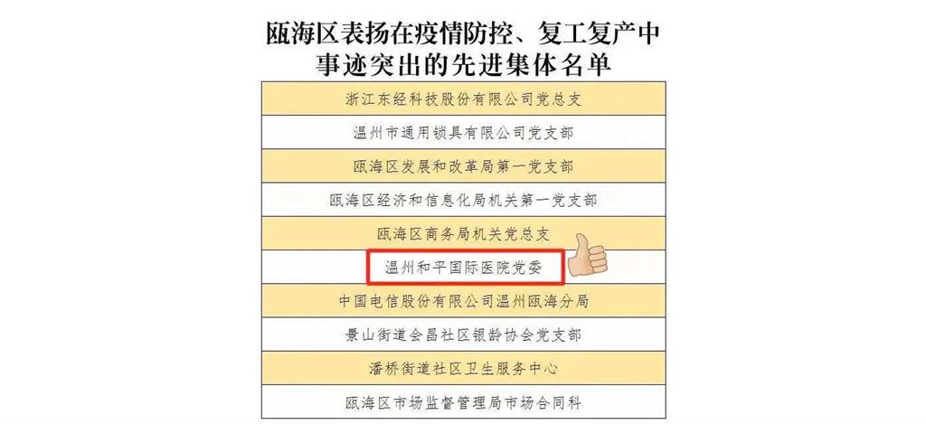 醫(yī)院在疫情防控、復(fù)工復(fù)產(chǎn)中表現(xiàn)突出,被甌海區(qū)委區(qū)政府通報表彰。