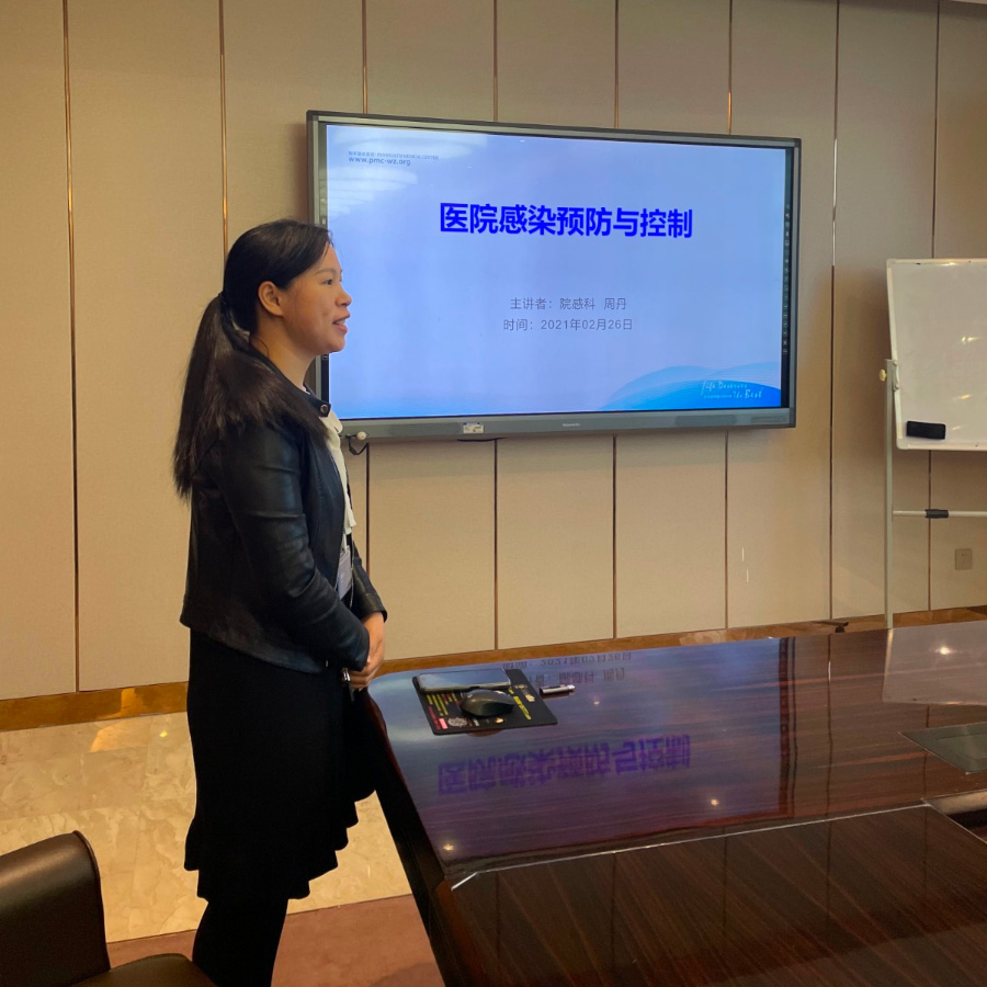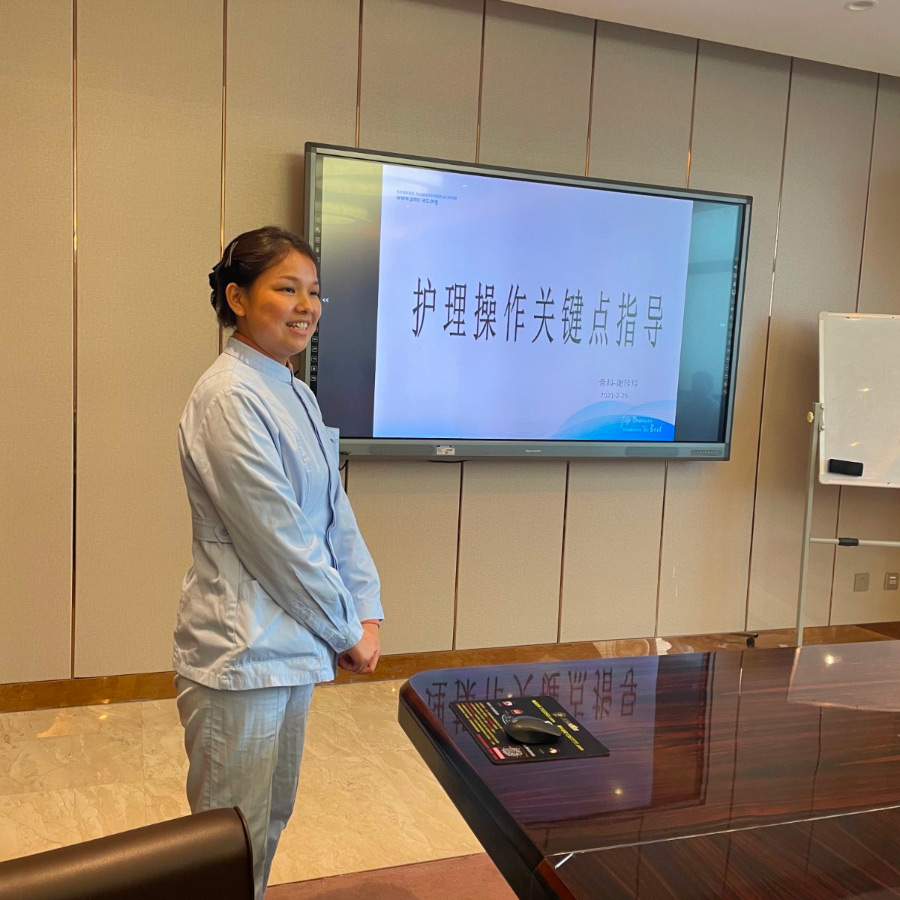 在培訓(xùn)會(huì)上,和平國際副院長(zhǎng)陳愛華、院感科科長(zhǎng)周丹、客服部主任方祺、護(hù)師謝玲玲講授了專業(yè)的護(hù)理內(nèi)容。