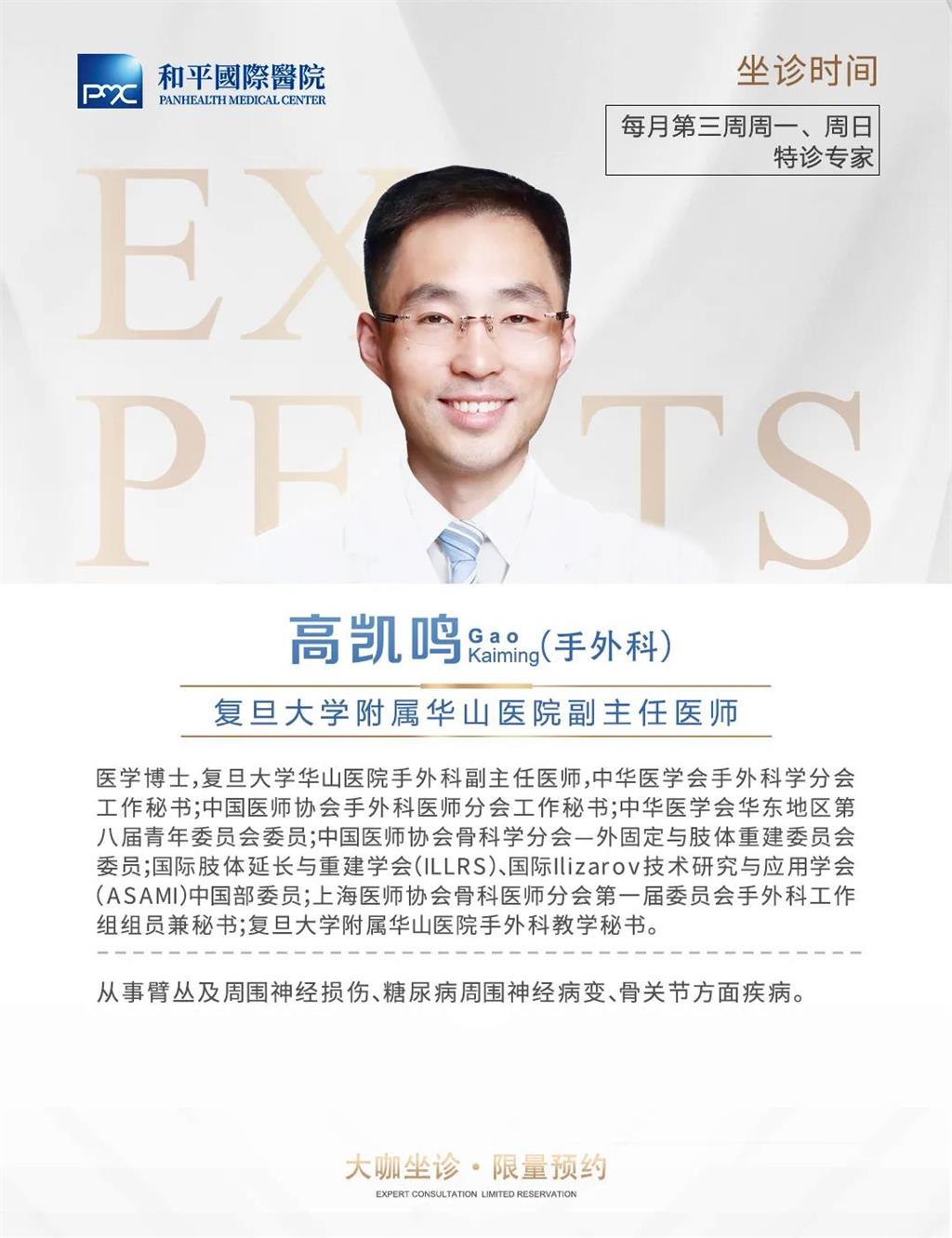 隨著社會的不斷發(fā)展進步,眾多創(chuàng)傷修復的患者對于手術(shù)的要求也在不斷提高。患者們希望一場手術(shù)治療,不僅能夠?qū)⑹軗p部位進行修復,同時也能夠達到微創(chuàng)、淺疤乃至無創(chuàng)、無疤的手術(shù)效果,這一希望,不僅是患者對自身審美要求的提高,更是對醫(yī)師專業(yè)能力需求的提高。和平國際醫(yī)院創(chuàng)傷與創(chuàng)面修復科和平國際醫(yī)院創(chuàng)傷與創(chuàng)面修復科開展了創(chuàng)傷骨科、顯微外科、臂叢神經(jīng)損傷手內(nèi)在肌功能重建及四肢畸形矯正等相關(guān)手術(shù),并與溫州醫(yī)科大學藥學院聯(lián)合進行了創(chuàng)面修復的基礎(chǔ)和臨床研究。科室通過多個學科的通力合作,讓每一位進行治療的患者都能切身感受到,手術(shù)在治療病癥的同時,也能實現(xiàn)“手術(shù)最低傷害”。 和平國際醫(yī)院創(chuàng)傷與創(chuàng)面修復科擁有尖端的骨科基礎(chǔ)檢查設備,以及先進的手術(shù)配套設施,包括美國GE公司Discovery 750W型超導核磁共振、2間百級數(shù)字一體化手術(shù)室、11間層流手術(shù)室、以及德國貝朗關(guān)節(jié)鏡等一系列進口高端設備。為了滿足患者日益提高的診療需求,和平國際醫(yī)院開設了名醫(yī)館,特別邀請了復旦大學附屬華山醫(yī)院手外科副主任醫(yī)師、醫(yī)學博士高凱鳴來院坐診。高凱鳴長期從事于周圍(臂叢)神經(jīng)損傷及卡壓的臨床治療和科研研究工作,在臂叢及周圍神經(jīng)損傷的修復重建方面投入了大量精力,在上肢骨關(guān)節(jié)損傷修復以及微創(chuàng)治療領(lǐng)域有豐富的臨床經(jīng)驗。