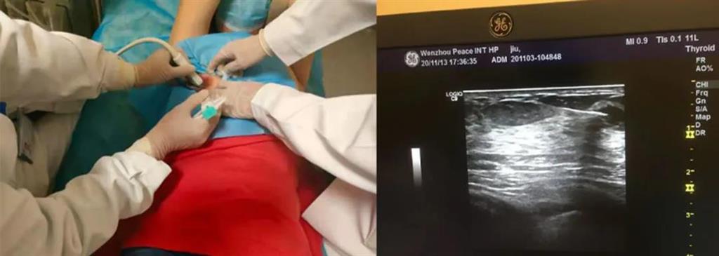 然后,完善頸部超聲檢查,以明確腫物是否在甲狀腺內(nèi),并判斷結(jié)節(jié)的形態(tài)、大小、數(shù)目、囊實性、血流情況、結(jié)節(jié)與周邊組織的關(guān)系,以及頸部淋巴結(jié)的腫大情況。必要時需要在超聲引導(dǎo)下甲狀腺細(xì)針穿刺活檢以判別結(jié)節(jié)的良惡性。