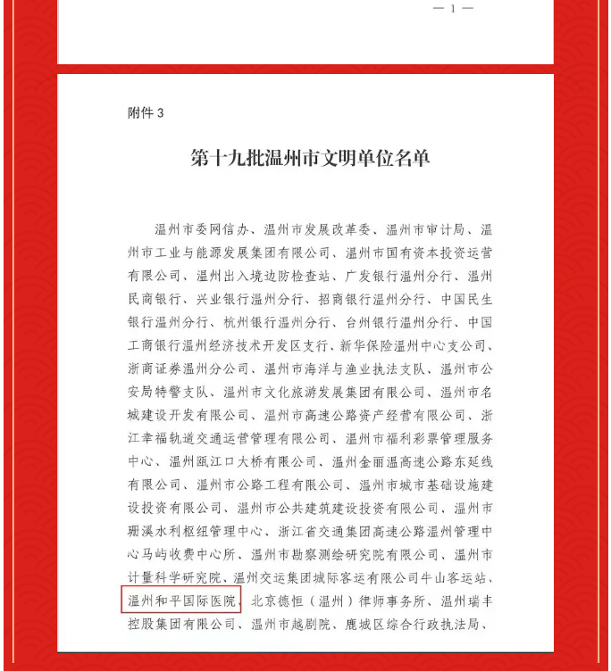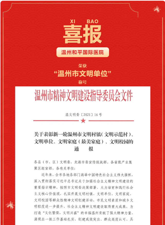喜報(bào)丨和平國際醫(yī)院榮獲 “溫州市文明單位”稱號(hào)